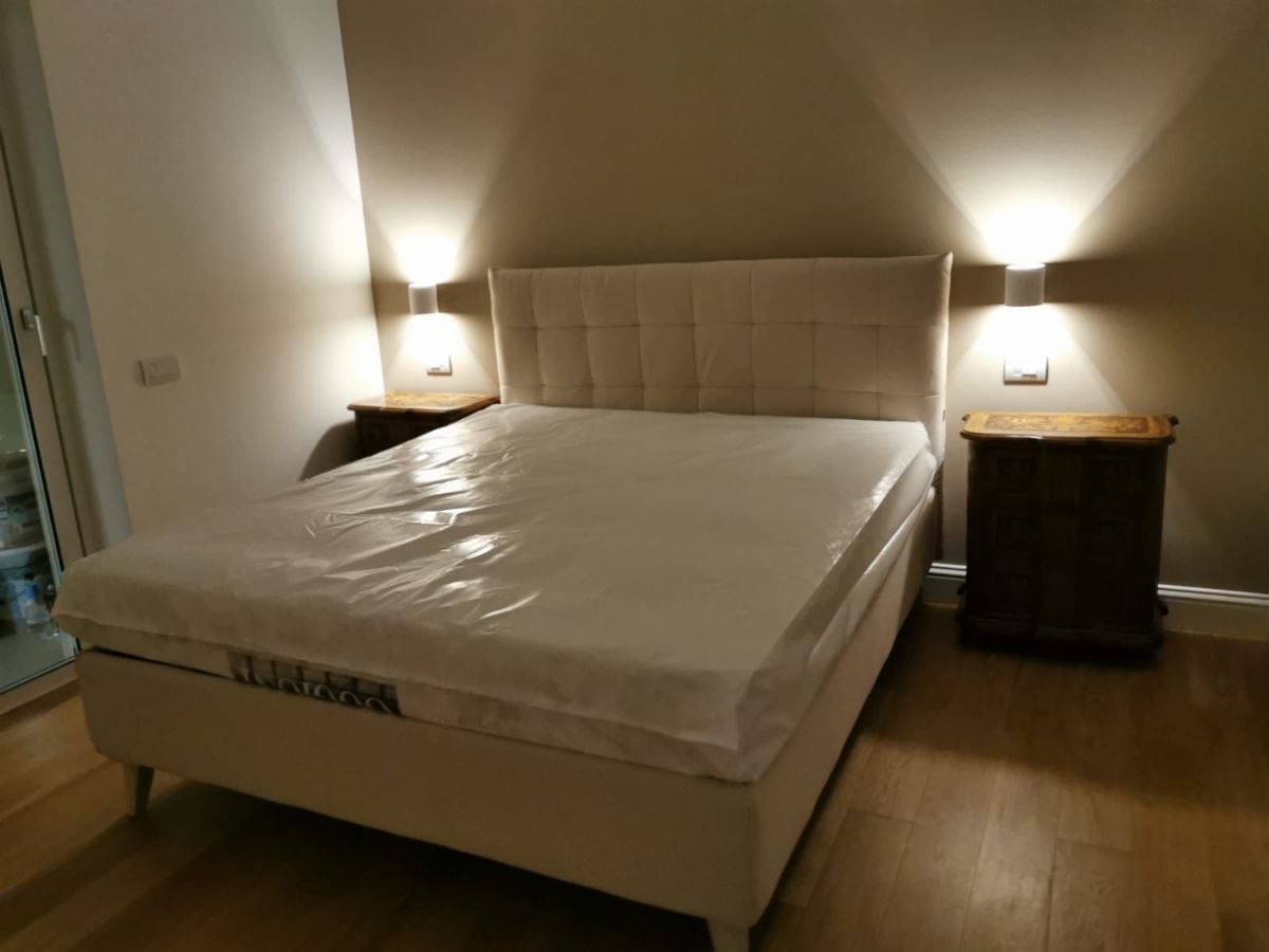 La camera da letto è semplice e accogliente, quella per gli ospiti con parete attrezzata su misura color verde con armadio in legno è minimale e funzionale ai diversi usi.