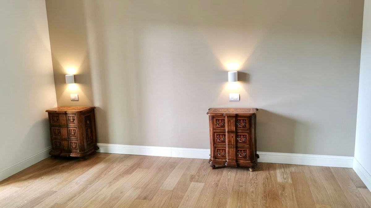 Battiscopa bianco a contrasto modanato in tutta casa per uno stile classico contemporaneo.