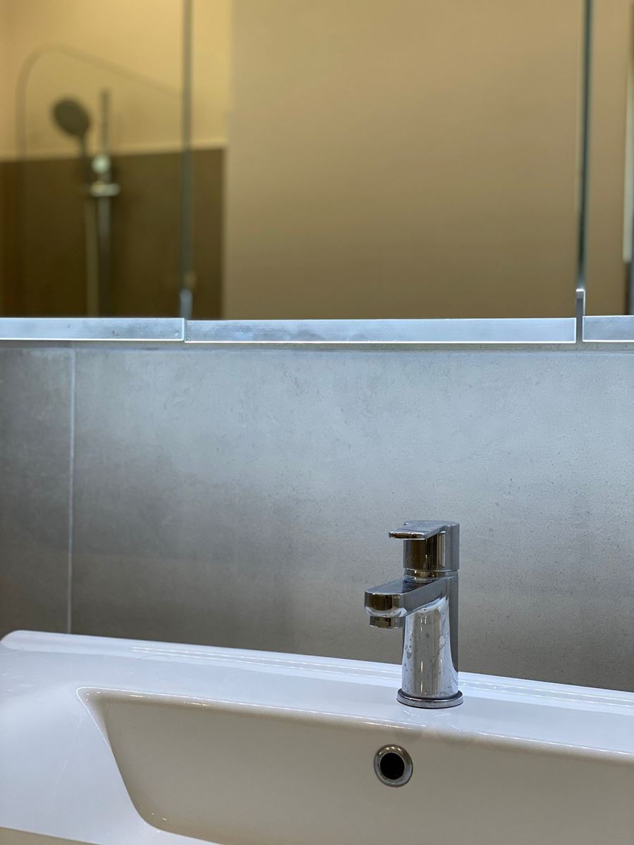 Dovendo scegliere un rivestimento che andasse bene sia per loro che per eventuali acquirenti, ho optato per un gres grigio rettificato dal tono neutro con un leggero effetto cemento che non stancherà nei prossimi anni.